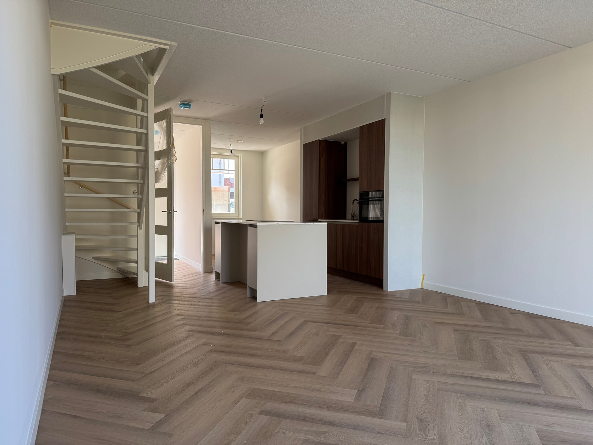 De woning is voorzien van een fraaie visgraat PVC-vloer en de wanden zijn netjes wit afgewerkt. De woning wordt gedeeltelijk gestoffeerd opgeleverd; de vloer is aanwezig, maar raambekleding zal je zelf moeten te verzorgen.