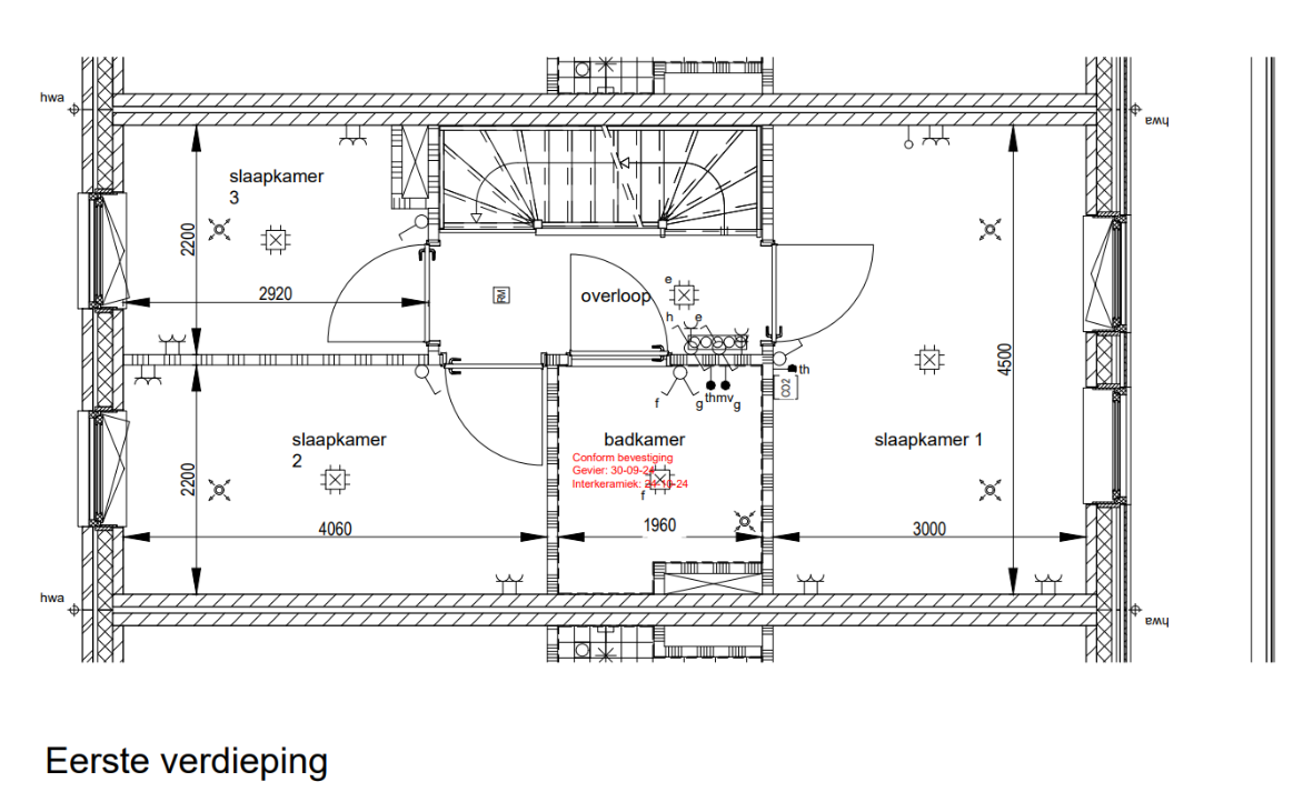 De badkamer is modern en compleet uitgevoerd met een inloopdouche, toilet, wastafel, spiegel en wastafelmeubel. Op de verdiepingen bevinden zich 3 slaapkamers, waardoor de woning uitstekend geschikt is voor gezinnen, stellen of huurders die behoefte hebben aan extra ruimte om thuis te werken of een hobbykamer in te richten. De zolder heeft door de speelse punt in het dak een zeer grote 4e slaapkamer en voorzolder waar de wasmachineaansluiting zit en alle zaken om de woning full electric te maken.