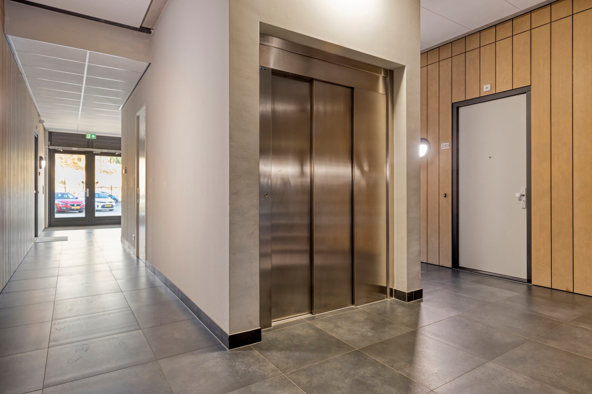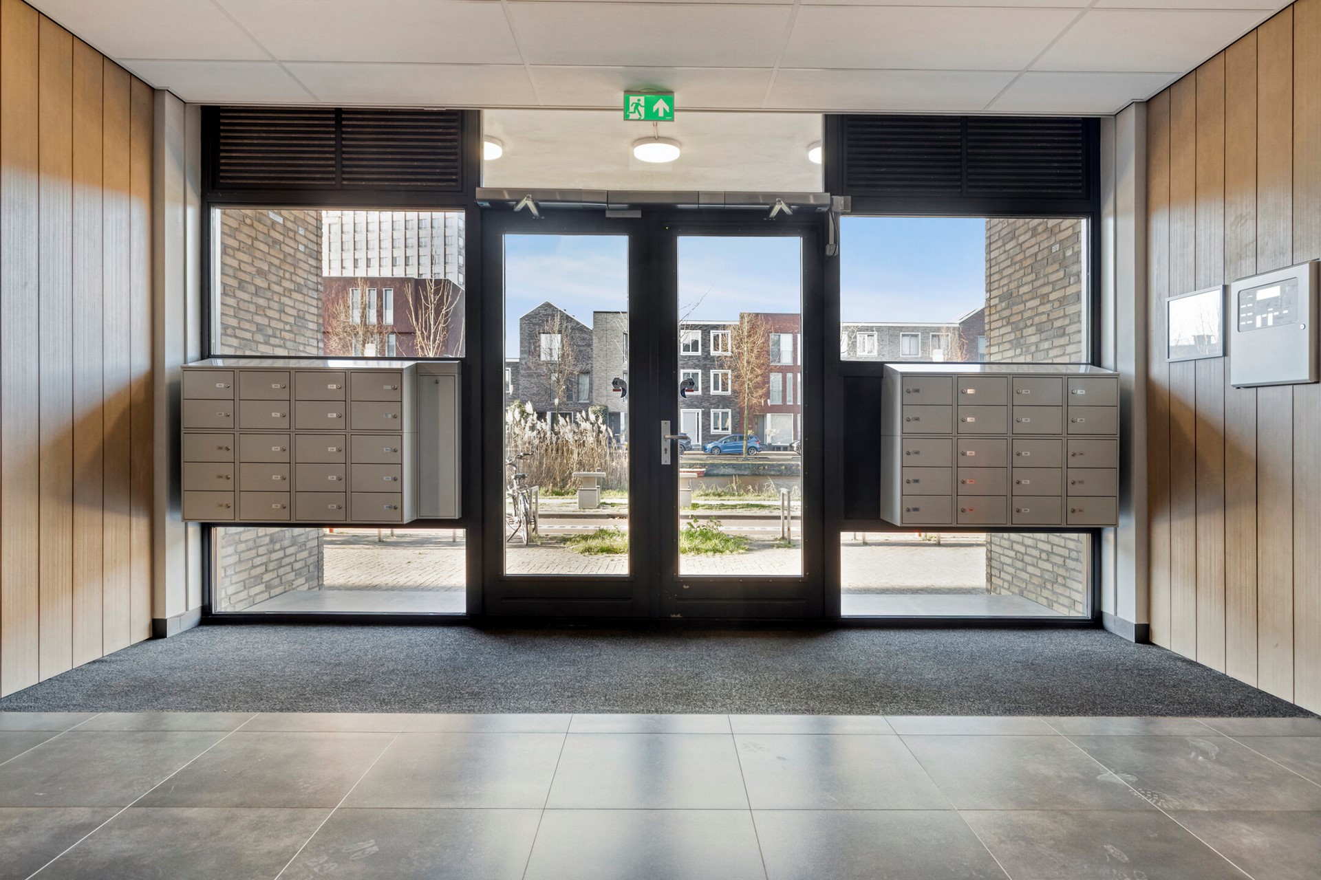 Indeling: Via de entree met bellenplateau en brievenbussen bereik je met de trap of lift de eerste verdieping en de voordeur van het appartement. Bij binnenkomst heb je toegang tot de inpandige berging, het toilet, de woonkamer met open keuken, het balkon en de slaapkamer. Vanuit de slaapkamer bereik je de badkamer, die van alle gemakken is voorzien.