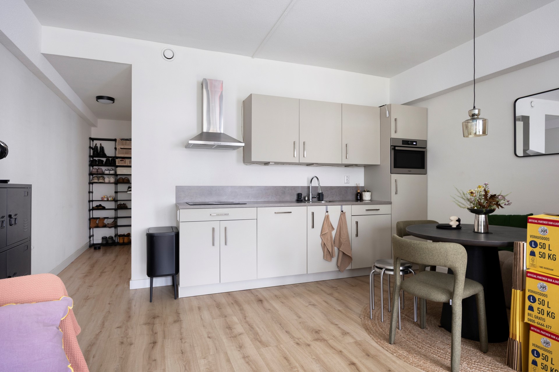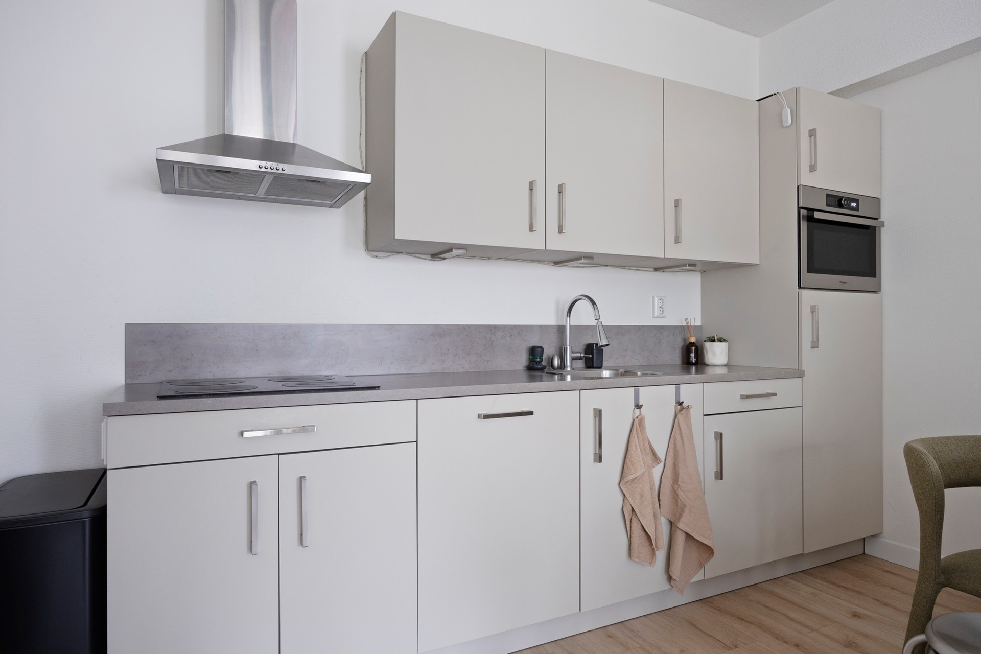 Opleverniveau: Volledig gestoffeerd opgeleverd met een PVC vloer, hoge plinten en zon verduisterende gordijnen. Keuken welke van alle gemakken is voorzien (koelkast, vaatwasser, combi-oven magnetron, inductiekookplaat). De wanden zijn wit afgewerkt en de badkamer is voorzien van ruime inloopdouche, wastafel met mengkraan en spiegel voorzien van verlichting.