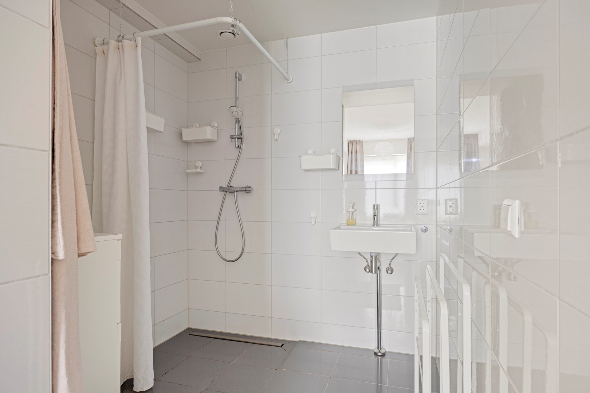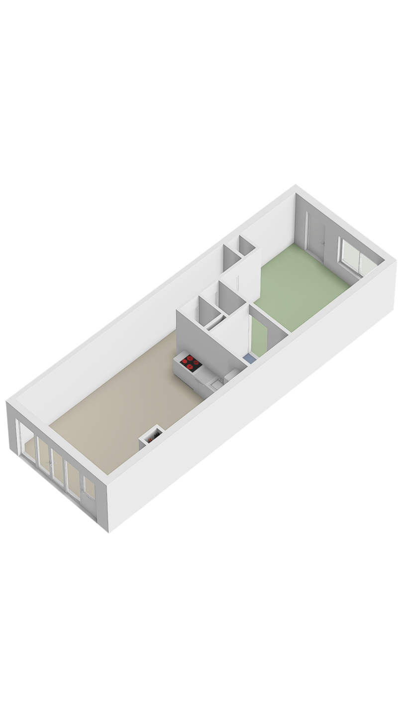 Indeling: Binnenkomst in de woonkamer welke toegang geeft tot de hal en alle andere kamers. Woonkamer met hoge plafonds (3.10), toegang tot de tuin via de woonkamer, open keuken, inpandige berging met aansluiting voor wasmachine en droger. Ruime slaapkamer met en-suite badkamer voorzien van mooi tegelwerk, inloopdouche en wastafel.