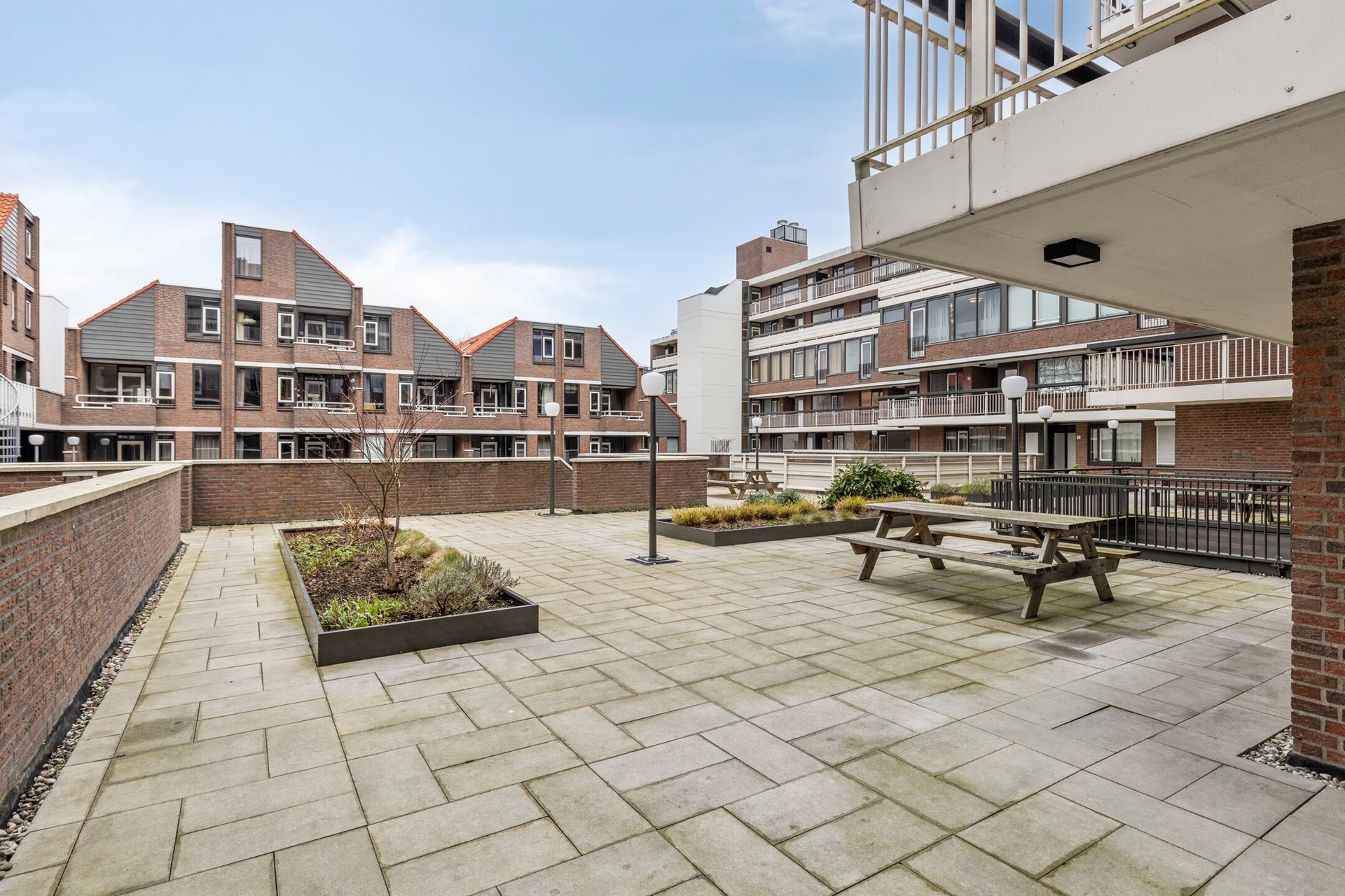Naast de voorzieningen in het appartement zijn er ook diverse gezamenlijke voorzieningen in het complex zoals de berging welke bij het appartement hoort, twee gezamenlijke fietsenstallingen, een royaal gemeenschappelijk dakterras en binnentuin. Uniek in Apeldoorn!